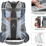 - LIGHTWEIGHT — Easy to carry:The 40L hiking backpack is lightweight and it’s breathable mesh shoulder straps with plentiful sponge padding help to relieve the stress from your shoulder. The large capacity of 40L provides enough space for outdoor travel,camping,hiking and fishing. It meet size requirements for most airlines. This camping backpack can be used as hiking backpack, travel bags and business bag,which is suitable for men and women.